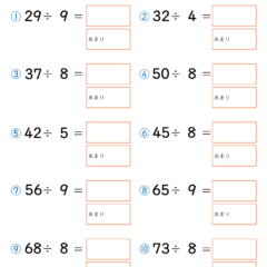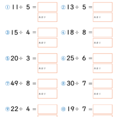 カテゴリー「小学生教材・プリント」>「算数プリント」>「割り算(あまりあり・小学3年生)|算数プリント|練習問題」