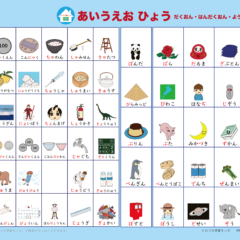 - 自分で書いて飾れる「あいうえお表(ひらがな表)濁音・半濁音・拗音」絵付き