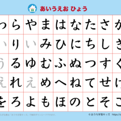 あいうえお表(ひらがな表)シンプル文字のみ、やゆよ・わをん版、ピンク スポンサーリンク あいうえお表(ひらがな表) X Facebook はてブ LINE Pinterest 2021.09.142023.02.13 「幼児教材・知育プリント」>「ひらがな練習プリント」「あいうえお表(ひらがな表)」 あいうえお表(ひらがな表) 文字のみのシンプルな表 やゆよ・わをん版 背景色ピンク(背景色はホワイトとブルーもあります) A4サイズとB4サイズがダウンロードできます 下の「プリントページ」から無料でダウンロードして、印刷しプリントにできます(PDFファイル)。 プリントページ(A4) プリントページ(B4)