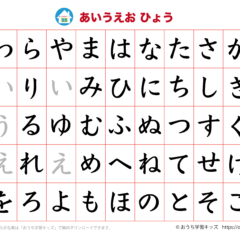 あいうえお表(ひらがな表)シンプル文字のみ、やゆよ・わをん版、ホワイト スポンサーリンク あいうえお表(ひらがな表) X Facebook はてブ LINE Pinterest 2021.08.052023.02.13 「幼児教材・知育プリント」>「ひらがな練習プリント」「あいうえお表(ひらがな表)」 あいうえお表(ひらがな表) 文字のみのシンプルな表 やゆよ・わをん版 背景色ホワイト(背景色はブルーとピンクもあります) A4サイズとB4サイズがダウンロードできます 下の「プリントページ」から無料でダウンロードして、印刷しプリントにできます(PDFファイル)。 プリントページ(A4) プリントページ(B4)