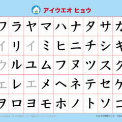 「幼児教材・知育プリント」>「カタカナ練習プリント」>「アイウエオ表(カタカナ表)」