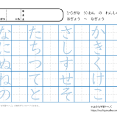 ひらがな練習プリント50音・後半(は行〜わ行)なぞり書き&空欄 スポンサーリンク ひらがな練習プリント X Facebook はてブ LINE Pinterest 2021.05.202021.09.13 「幼児教材・知育プリント」>「ひらがな練習プリント」「ひらがな練習プリント(50音)」 ひらがな(平仮名)「50音」の後半「は行〜わ行」を1枚に練習ができるプリントです(なぞり書き・空欄)。 下の「プリントページ」から無料でダウンロードして、印刷しプリントにできます(PDFファイル)。 プリントページ