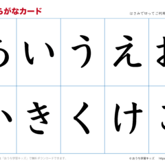 - 表側が文字と絵になっているひらがなカード(あいうえおカード)。裏側は無し(白紙)