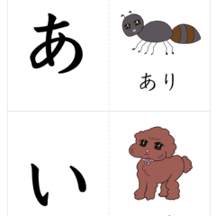 - 表側が文字、裏側が絵になっているひらがなカード(あいうえおカード)