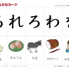 ▲実際に印刷したひらがなカード(絵の天地を逆にしています)