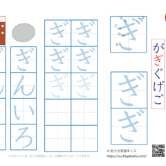 - ひらがな(平仮名)濁音(だくおん)「が」の練習ができます。