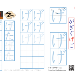 - ひらがな(平仮名)濁音(だくおん)「ご」の練習ができます。