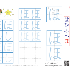 ひらがな練習プリント「は行(はひふへほ)」 スポンサーリンク ひらがな練習プリント X Facebook はてブ LINE Pinterest 2021.05.192021.09.13 「幼児教材・知育プリント」>「ひらがな練習プリント」「ひらがな練習プリント(行ごと・五文字ずつ)あ行〜わ行」 ひらがな(平仮名)「は行(はひふへほ)」の練習ができます。 下の「プリントページ」から無料でダウンロードして、印刷しプリントにできます(PDFファイル)。 プリントページ