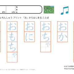 「幼児教材・知育プリント」>「ひらがな練習プリント」>「ひらがな練習プリント(○から始まる言葉)」