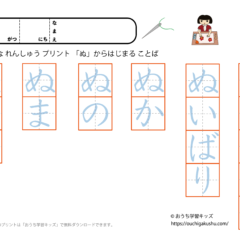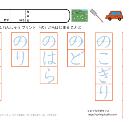 「幼児教材・知育プリント」>「ひらがな練習プリント」>「ひらがな練習プリント(○から始まる言葉)」