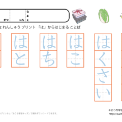 「幼児教材・知育プリント」>「ひらがな練習プリント」>「ひらがな練習プリント(○から始まる言葉)」