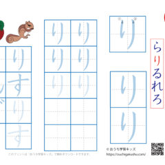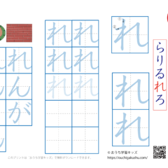 ひらがな練習プリント「る」 スポンサーリンク ひらがな練習プリント X Facebook はてブ LINE Pinterest 2021.06.032021.09.13 「幼児教材・知育プリント」>「ひらがな練習プリント」「ひらがな練習プリント(一文字ずつ)」 ひらがな(平仮名)「る」の練習ができます。 下の「プリントページ」から無料でダウンロードして、印刷しプリントにできます(PDFファイル)。 プリントページ