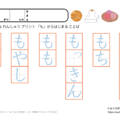 「幼児教材・知育プリント」>「ひらがな練習プリント」>「ひらがな練習プリント(○から始まる言葉)」