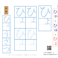 - ひらがな(平仮名)拗音(ようおん)「ひゅ」の練習ができます。