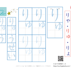 - ひらがな(平仮名)拗音(ようおん)「りょ」の練習ができます。