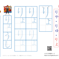- ひらがな(平仮名)拗音(ようおん)「りゅ」の練習ができます。
