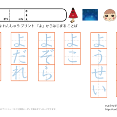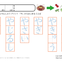 「幼児教材・知育プリント」>「ひらがな練習プリント」>「ひらがな練習プリント(○から始まる言葉)」