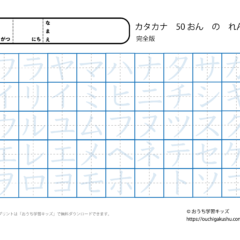 カタカナ練習プリント50音・完全版(なぞり書き3・濃い文字) スポンサーリンク カタカナ練習プリント X Facebook はてブ LINE Pinterest 2021.06.212021.09.13 「幼児教材・知育プリント」>「カタカナ練習プリント」>「カタカナ練習プリント(50音)」 ひらがな(平仮名)「50音」完全版・全てを1枚に練習ができるプリントです(なぞり書き・濃い文字)。 「ヤイユエヨ」「ワイウエヲ」になった五十音の完全版です。 下の「プリントページ」から無料でダウンロードして、印刷しプリントにできます(PDFファイル)。 プリントページ