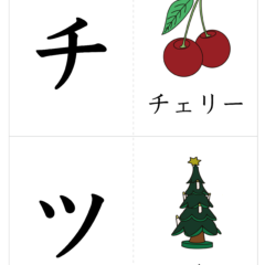 - A4サイズに2文字ずつ、左側が文字、右側が絵(イラスト)を入れたひらがなカード