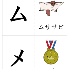 - カタカナ(片仮名)の文字と単語を遊びながら覚えられます