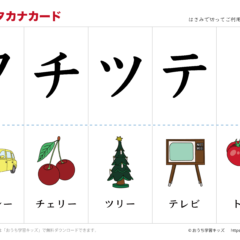 - 表側が文字、裏側が絵になっているカタカナカード(アイウエオカード)