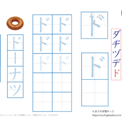 - カタカナ(片仮名)濁音(だくおん)「デ」の練習ができます。