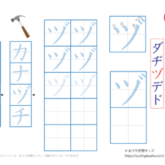 「幼児教材・知育プリント」>「カタカナ練習プリント」>「カタカナ練習プリント(濁音・半濁音・拗音・促音)」>「カタカナ練習プリント「濁音・半濁音・拗音・促音」(一文字ずつ)」