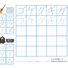 「幼児教材・知育プリント」>「カタカナ練習プリント」>「カタカナ練習プリント(濁音・半濁音・拗音・促音)」>「カタカナ練習プリント「濁音・半濁音・拗音・促音」(一文字ずつ)」