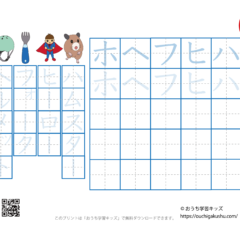 「幼児教材・知育プリント」>「カタカナ練習プリント」「カタカナ練習プリント(一文字ずつ)」