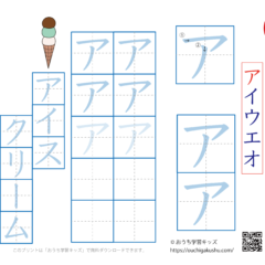 「幼児教材・知育プリント」>「カタカナ練習プリント」「カタカナ練習プリント(一文字ずつ)」