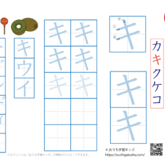 「幼児教材・知育プリント」>「カタカナ練習プリント」「カタカナ練習プリント(一文字ずつ)」