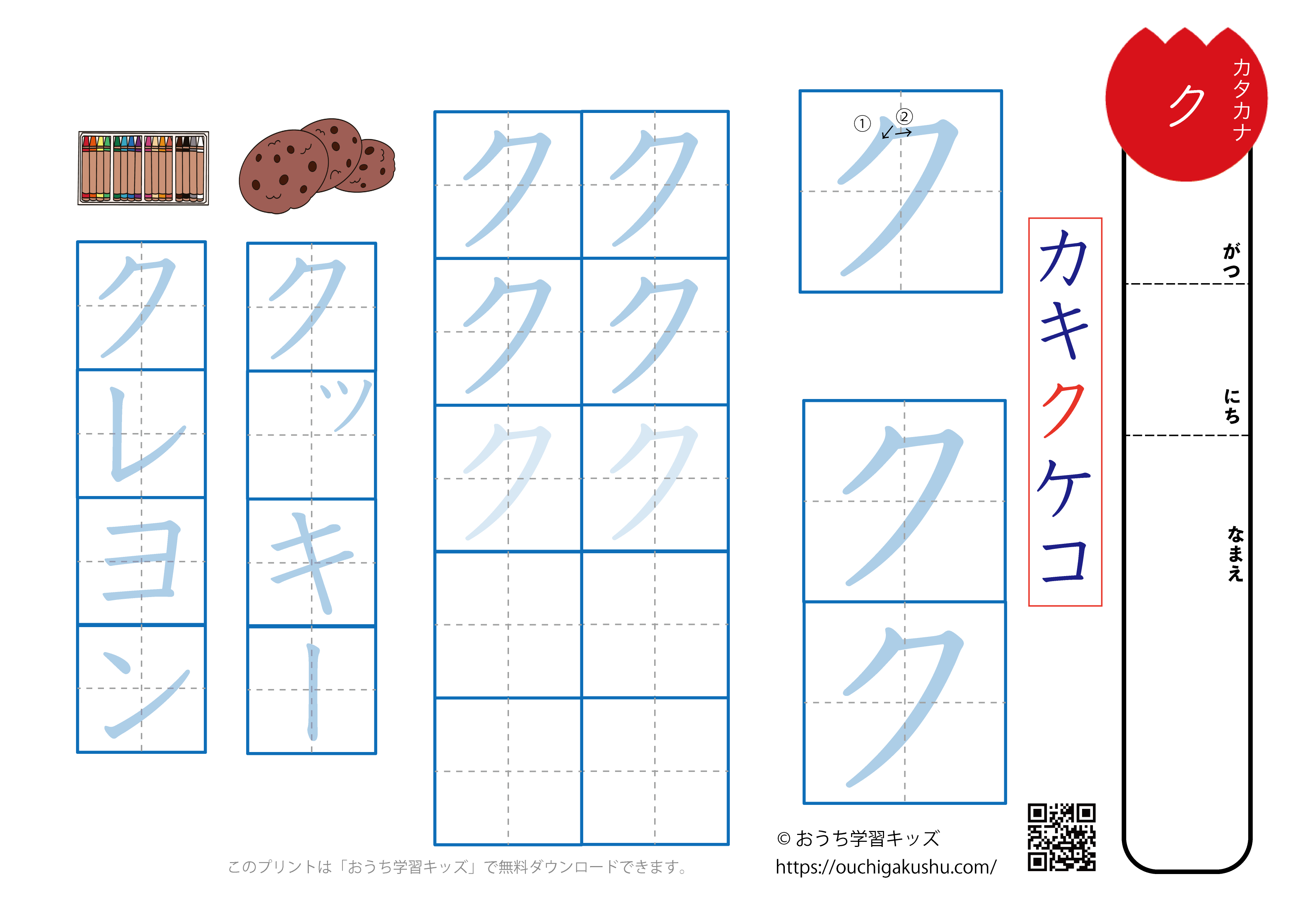 カタカナ練習プリント「キ」 スポンサーリンク カタカナ練習プリント X Facebook はてブ LINE Pinterest 2021.06.172025.10.14 「幼児教材・知育プリント」>「カタカナ練習プリント」「カタカナ練習プリント(一文字ずつ)」 カタカナ(片仮名)「キ」の練習ができます 「カタカナのみ」と「ひらがな補助付き」の2種類 下の「プリントページ」から無料でダウンロードして、印刷しプリントにできます(PDFファイル)。 プリントページ 「ひらがな補助付き」のプリントも用意しました▼ プリントページ(ひらがな補助付き)