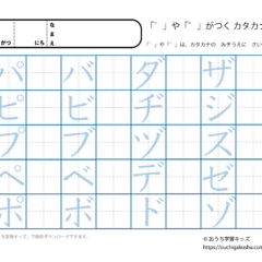「幼児教材・知育プリント」>「カタカナ練習プリント」「カタカナ練習プリント(一文字ずつ)」