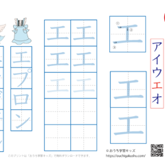 「幼児教材・知育プリント」>「カタカナ練習プリント」「カタカナ練習プリント(一文字ずつ)」