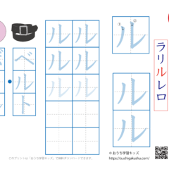 「幼児教材・知育プリント」>「カタカナ練習プリント」「カタカナ練習プリント(一文字ずつ)」