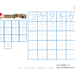 「幼児教材・知育プリント」>「カタカナ練習プリント」「カタカナ練習プリント(一文字ずつ)」