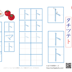 「幼児教材・知育プリント」>「カタカナ練習プリント」「カタカナ練習プリント(一文字ずつ)」