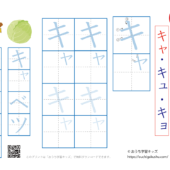 - カタカナ(片仮名)拗音(ようおん)「キュ」のなぞり書き練習ができます。