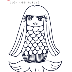 - 色鉛筆やクレヨンで「アマビエ(1)のぬりえ(塗り絵)」ができます(運筆)