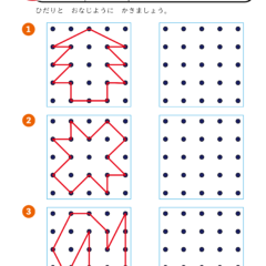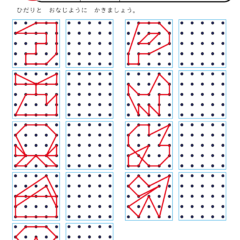 点つなぎ(点描写・点結び:5✕5)3 スポンサーリンク 幼児教材 X Facebook はてブ LINE Pinterest 2023.12.05 「幼児教材・知育プリント」>「点つなぎ」>「点つなぎ(点描写・点結び)」 点つなぎの「点描写・点結び」 グリッド線を結ぶ練習、運筆などの練習 左と同じ点図形を書く(描く) 点の数:縦5✕横5の3枚目 下の「プリントページ」から無料でダウンロード&印刷できます(PDFファイル)。 プリントページ