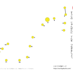 点つなぎ 星座「てんびん座」 スポンサーリンク 幼児教材 X Facebook はてブ LINE Pinterest 2024.05.02 「幼児教材・知育プリント」>「点つなぎ」>「点つなぎ(10までの数字)」 ▲点つなぎ 星座「てんびん座」完成例 鉛筆で星座「てんびん座」の点つなぎ、点描写の練習(運筆)ができます。 その他、1から10までの数字の学習にもなります。 下の「プリントページ」から無料でダウンロードして、印刷しプリントにできます(PDFファイル)。 プリントページ