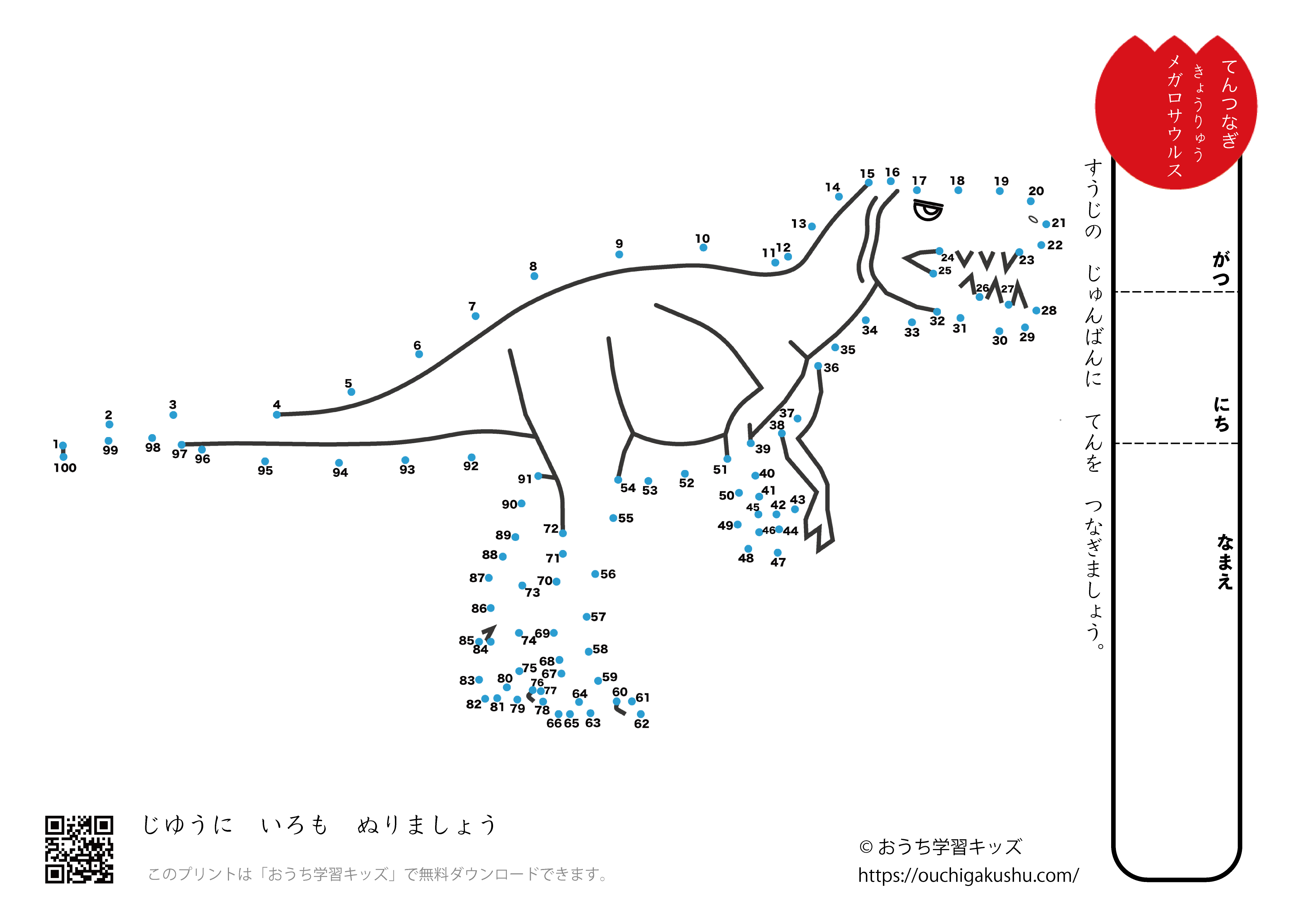 「幼児教材・知育プリント」>「点つなぎ」>「点つなぎ(60〜100までの数字)」